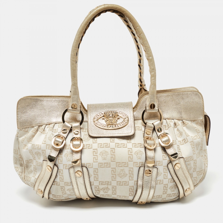 مملوكة مسبقًا حقيبة فيرساتشي إبزيم مادوسا جلد وكانفاس شهيرة ذهبية
