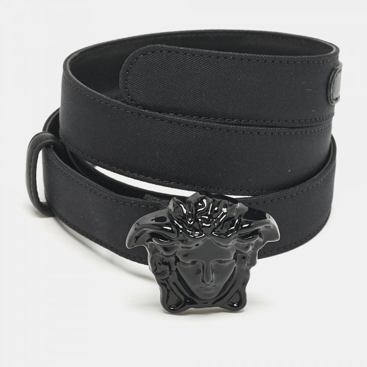 Pre Owned حزام فيرساتشي نحيف ميدوسا جلد أسود