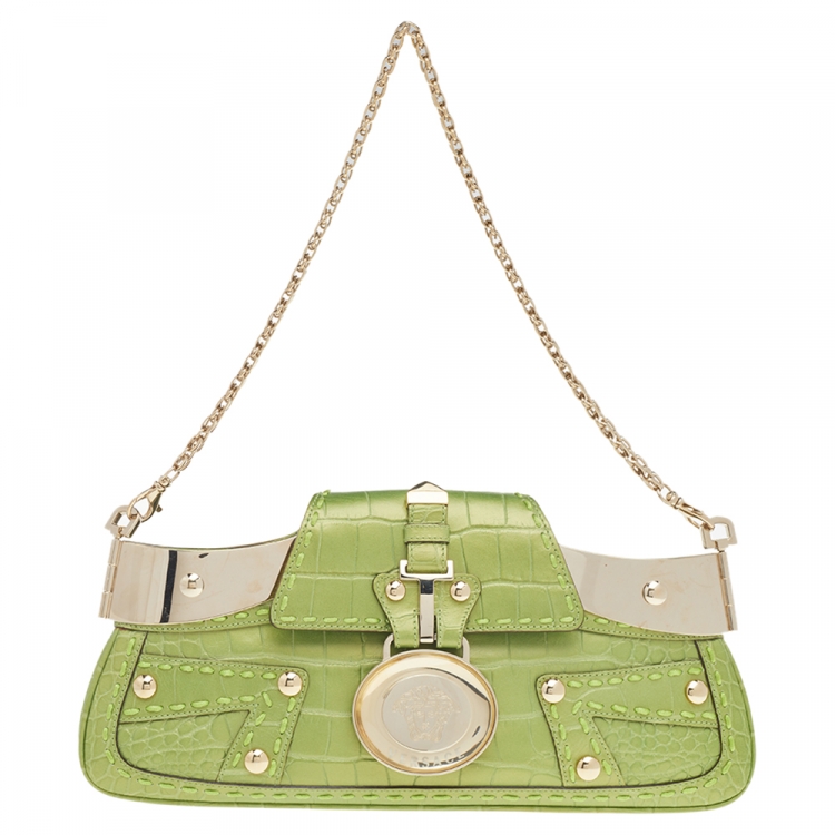 حقيبة كلتش فيرساتشي سلسلة جلد نقش تمساح أخضر