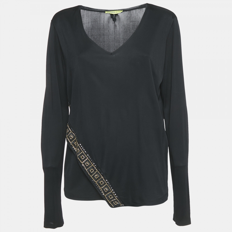 Versace Jeans Black Studded Jersey Long Sleeve Top XL