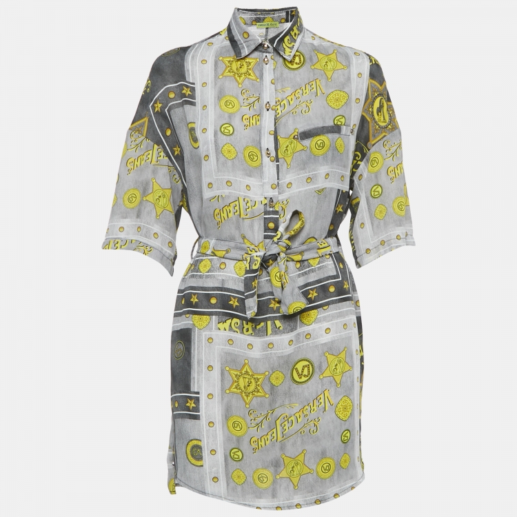 مملوكة مسبقًا تونيك كريب مطبوع فيرساتشي جينز رمادي متوسط