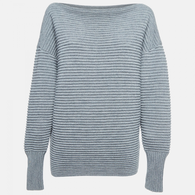 مملوكة مسبقًا Victoria Victoria Beckham Grey Ribbed Knit Sweater L