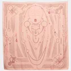 وشاح هيرمس حرير ملون وردي طبعة الربان دو شوفال