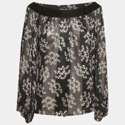 توب جيورجيو أرماني حرير مطبوع أسود بحافة مخمل مقاس كبير (لارج)