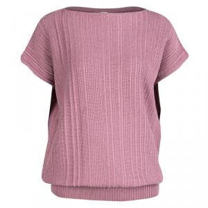 توب هيرمس أكمام قصيرة حواف مغايرة حرير أصفر مسطردة S