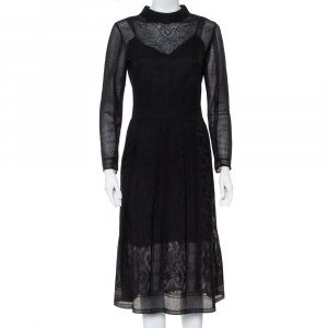 فستان إم ميزوني ماكسي تريكو مخرم أسود مقاس وسط (ميديوم)