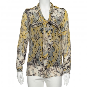 طقم بيجاما حرير مطبوع زهور مخطط متعدد الألوان دولتشي أند غابانا مقاس متوسط (ميديوم)