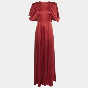 فستان ماكسي روكساندا ساتان حرير أحمر مقاس متوسط - ميديوم