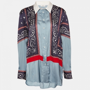 بلوزة إيميليو بوتشي حرير أزرق مطبوع برباط مقاس صغير - سمول