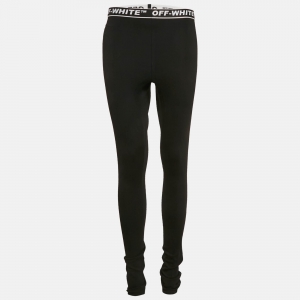 leggings أوف وايت نشط محبوك شعار أسود مقاس متوسط