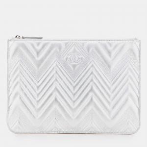 حقيبة كلتش شانيل فضية وسط شيفرون معدني جلد عجل أو كايس