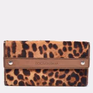 محفظة دولتشي أند غابانا جلد عجل بنقشة فهد بني وجلد لامع قارية