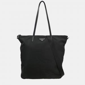 حقيبة يد برادا توتس جلد أسود غاليريا بسحاب مزدوج مرصعة طريقة حمل مزدوجة