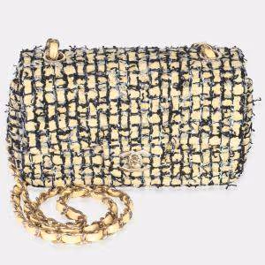 حقيبة شانيل فلاب مستطيلة صغيرة تويد أسود وأصفر 22P