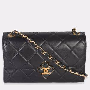 حقيبة شانيل سوداء مبطن جلد خروف صغيرة بقفل رفرف