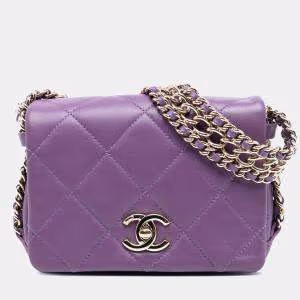 حقيبة شانيل ميني أرجوانية جِلَد حملان كريستال عملاق CC رفرف