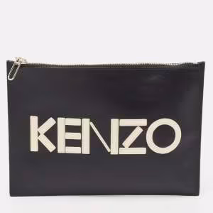 حقيبة صغيرة كينزو جلد أسود بشعار بسحّاب