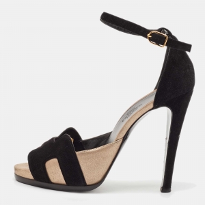 صندل هيرميس بريميير سويدي أسود/ذهبي معدني مقاس 37