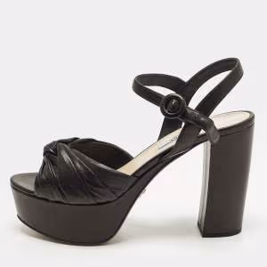 صندل بلاتفورم سير كاحل سويدي أسود برادا برباط مقاس 39
