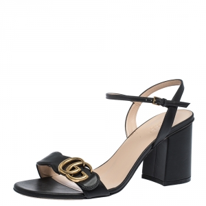 صندل غوتشي سير كاحل مارمونت حرفي الشعار جي جي جلد أسود مقاس 38