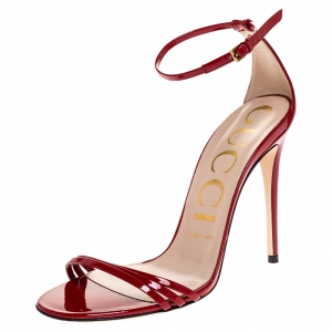 صندل غوتشي جلد أحمر لامع بسيور حزام للكاحل مقاس 37