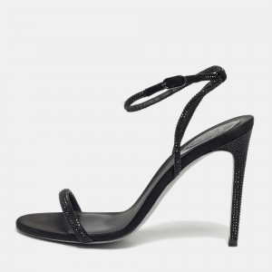 صندل ماخ أند ماخ أسود ساتان مع فيونكتين مزينتين بالكريستال مع رباط حول الكاحل مسطح مقاس 41