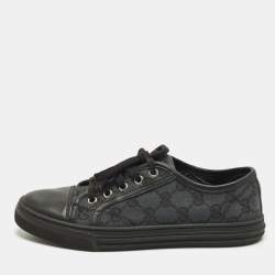 حذاء رياضي غوتشي رباط كانفاس GG وجلد رمادي وأسود مقاس 36