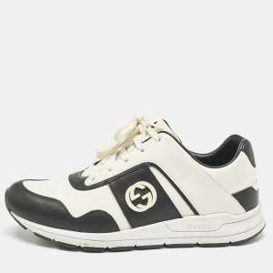 حذاء رياضي غوتشي عنق منخفض رباط علوي جي جي متشابك جلد أبيض / أسود مقاس 38.5