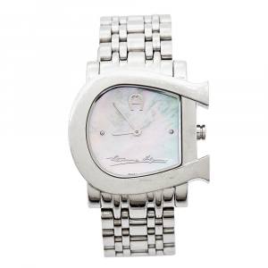 ساعة يد نسائية أيغنر جينوا ديو A31600 ألماسات وستانلس ستيل صدف بيضاء 31 مم
