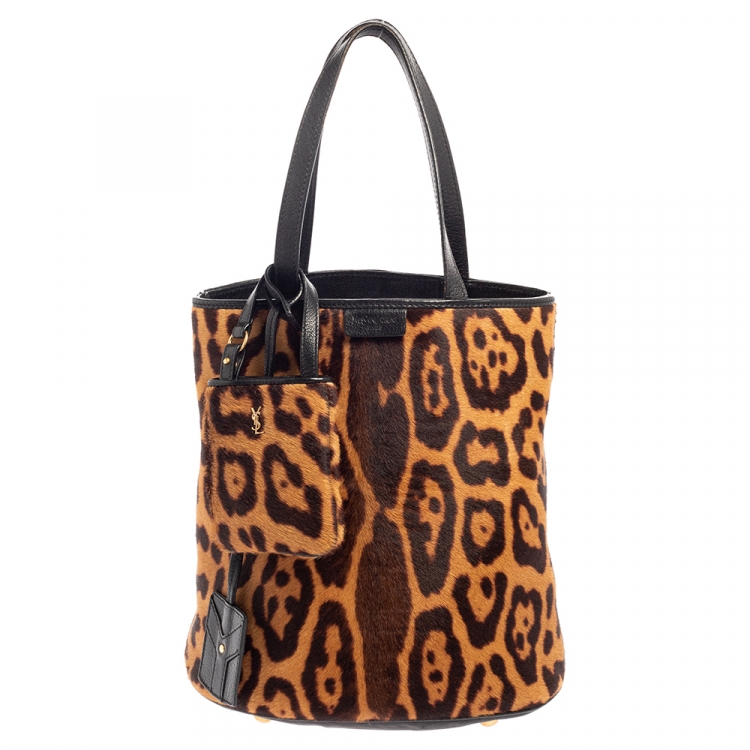 مملوكة مسبقًا حقيبة إيف سان لوران باكيت شعر حصان بطبعة الفهد