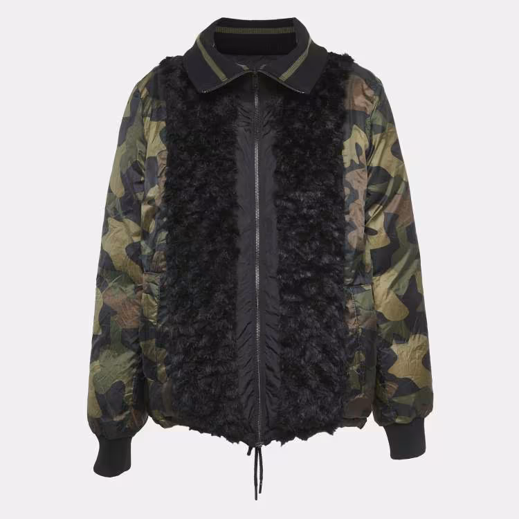 Pre Owned جاكيت كيتش زاديج آند فولتير بنقشة أسود/أخضر بتقليمات فرو نايلون بقلب مزدوج متوسط