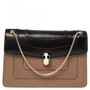 Bvlgari Beige Karung Large Serpenti Forever Flap Shoulder Bag
