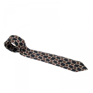 Chanel Vintage Navy Blue Geometric Print Silk Jacquard Tie