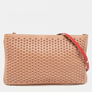 Christian Louboutin Beige Leather Spiked Loubiposh Shoulder Bag