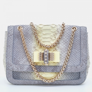 Christian Louboutin Grey/Yellow Python Small Sweet Charity Chain Bag