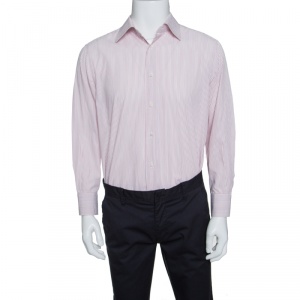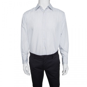 Burberry Off White Stretch Cotton Nova Check Trim Shirt XL