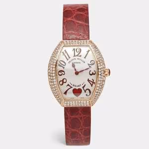 Franck Muller Brown Diamond Pave 18K Rose Gold Cintree Curvex 7502 S6 D CD Women'e Wristwatch 29 mm