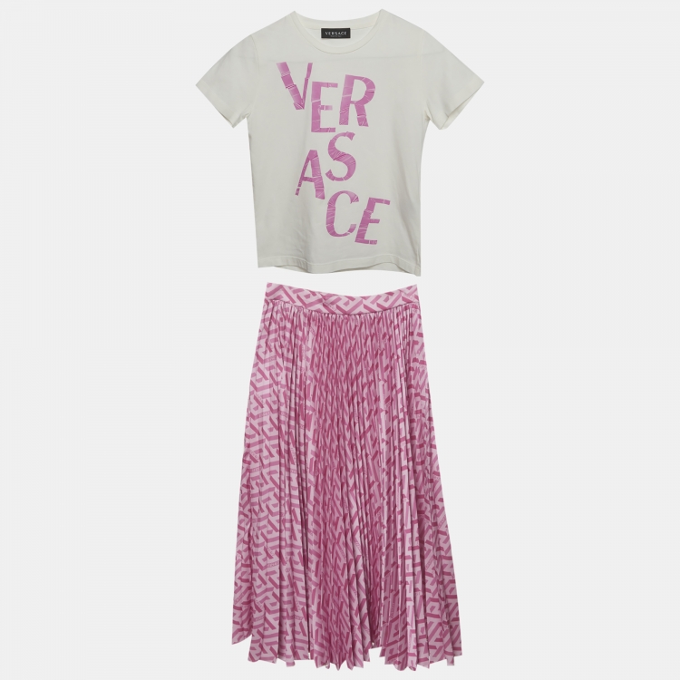 مملوكة مسبقًا Versace White/Pink Printed Jersey and Plisse Set 8Yrs