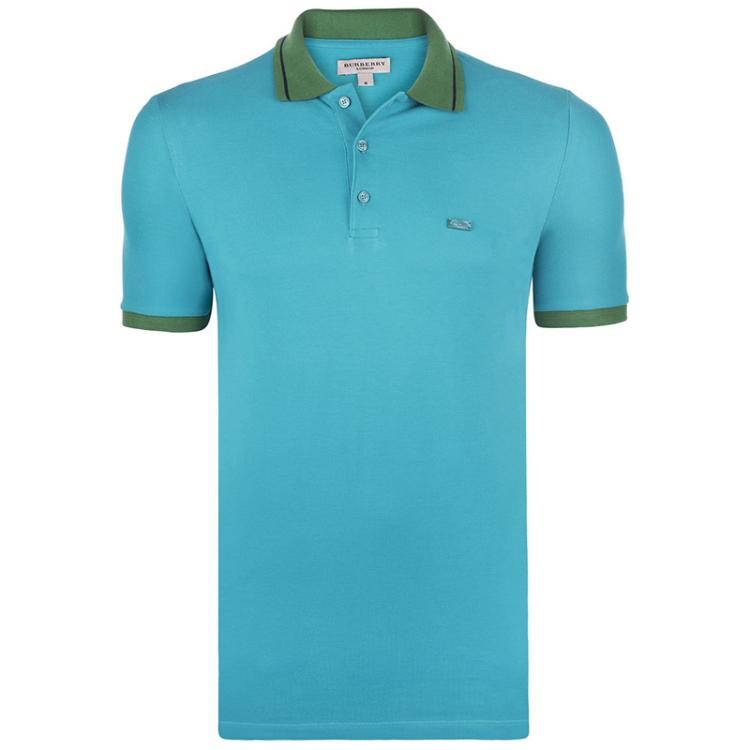 Pre Owned Burberry Brit Aqua Blue Contrast Collar Short Sleeve Polo Shirt M
