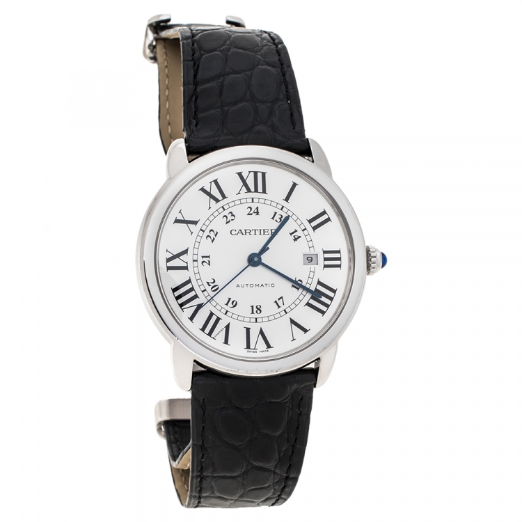 Cartier Silver Stainless Steel Alligator Leather Ronde Solo de Cartier W6701010 Men's Wristwatch 42 mm