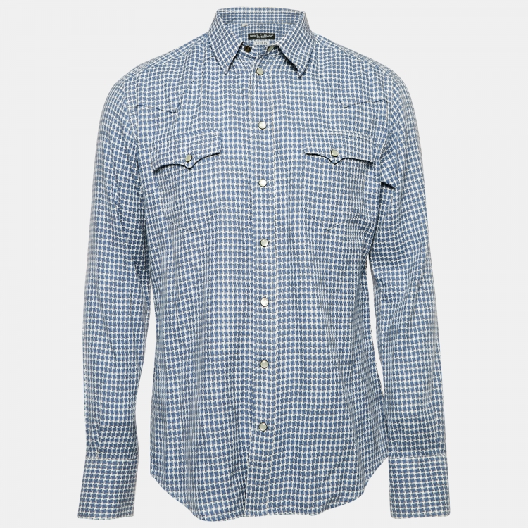 Dolce & Gabbana Blue Jacquard Sicilia Shirt XL