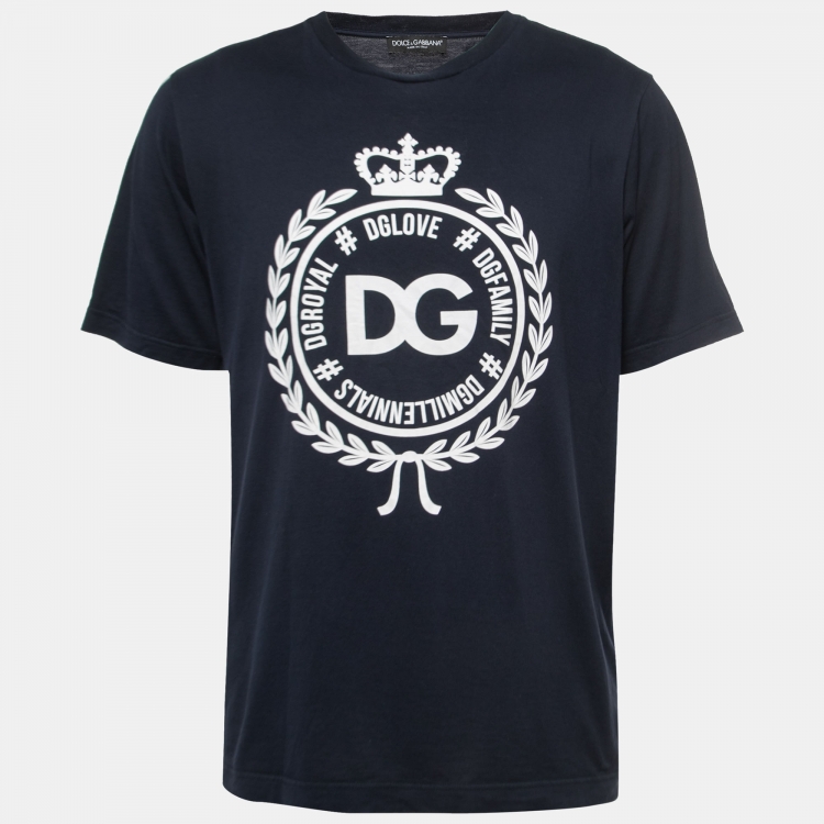 مملوكة مسبقًا Dolce & Gabbana Navy Blue Logo Print Cotton Crew Neck T-Shirt L
