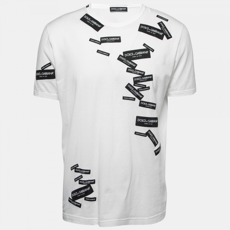 Dolce & Gabbana White Cotton Label Embroidered Short Sleeve T-Shirt XXL