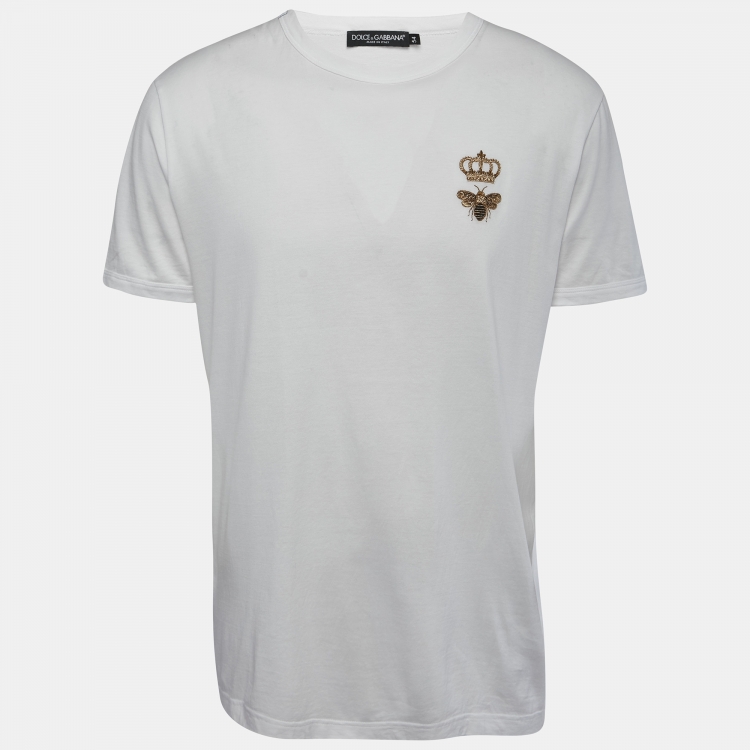 Dolce & Gabbana White Cotton Crown & Bee Embroidered Half Sleeve T-Shirt XXL