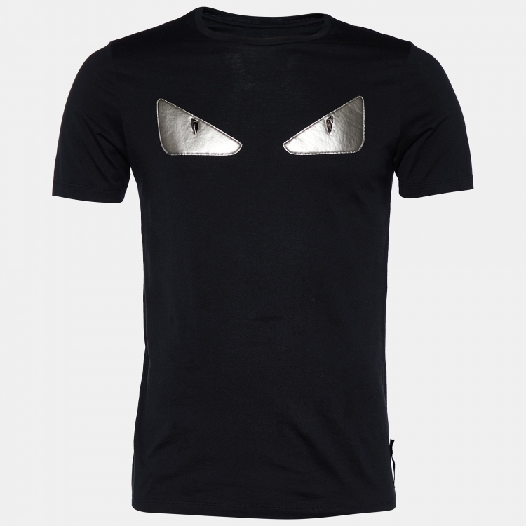 Fendi Black Cotton Studded Monster Eye Crew Neck T-Shirt S