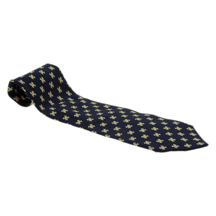Pre Owned Giorgio Armani Navy Blue Silk Printed Tie
