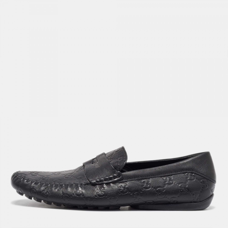 Gucci Black Guccissima Leather Penny Loafers Size 43