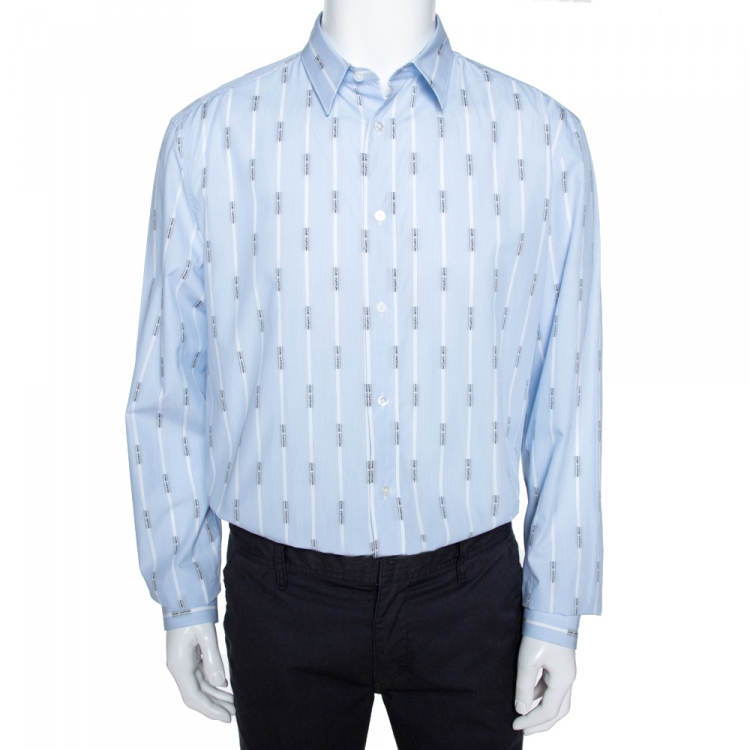 Louis Vuitton Light Blue Logo Jacquard Striped Cotton Regular Fit Shirt XXL