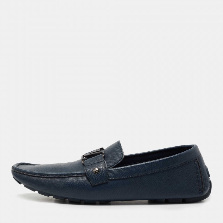 Louis Vuitton Navy Blue Leather Monte Carlo Loafers Size 43.5