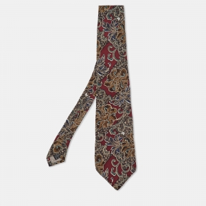 Givenchy Vinatge Dark Red Jacquard and Floral Print Silk Tie
